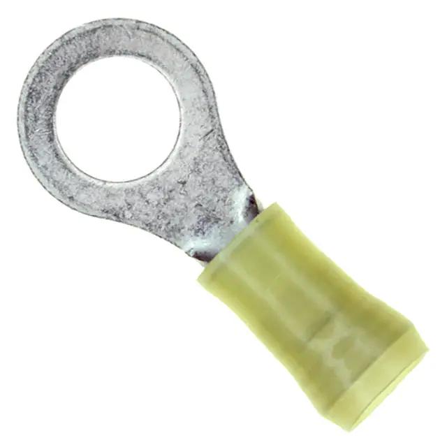 This is manufactured by TE Connectivity AMP Connectors. The manufacturer part number is 2-35111-1. It is assigned with possible HTSUS value of 8536.90.4000. The product is rohs3 compliant. It is 0.040" (1.02mm) thick. It is designed from highly reliable polyamide (pa), nylon insulating material. The product has an integral 1.322" (33.58mm) overall length. In addition, it is vendor undefined. The product's insulation diameter includes 0.150" ~ 0.250" (3.81mm ~ 6.35mm). The terminal is a circular type. It is shipped in tape & reel (tr). Moreover, the product has a wire gauge of 10-12 awg. Its outer edges are 0.531" (13.49mm) wide. Furthermore, the product is galvanized with excellent tin contact finishing. Its typical moisture sensitivity level is 1 (unlimited). The product features crimp termination style. It has a long 28 weeks standard lead time. The product consists of 5/16 stud. The splendid features of the product include serrated termination. The product is available in free hanging (in-line) configuration. It has a classic yellow colour. The product pidg, is a highly preferred choice for users. Insulation Option: insulated. The product is designated with the ear99 code number Moreover, it corresponds to 35111, a base product number of the product. The product is made from sturdy copper materials.