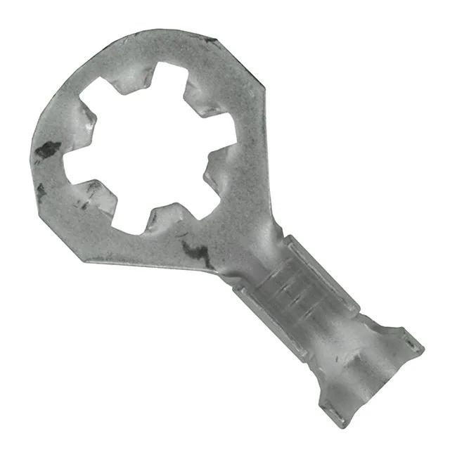 This is manufactured by TE Connectivity AMP Connectors. The manufacturer part number is 61795-1. It is assigned with possible HTSUS value of 8536.90.4000. The product is rohs compliant. It is 0.025" (0.64mm) thick. The product has an integral 0.772" (19.61mm) overall length. In addition, it is vendor undefined. The product's insulation diameter includes 0.105" ~ 0.145" (2.67mm ~ 3.68mm). The terminal is a oval type. It is shipped in tape & reel (tr). Moreover, the product has a wire gauge of 14-18 awg. Its outer edges are 0.445" (11.30mm) wide. Furthermore, the product is galvanized with excellent tin contact finishing. Its typical moisture sensitivity level is 1 (unlimited). The product features crimp termination style. It has a long 17 weeks standard lead time. The product consists of 10 stud. The splendid features of the product include inner teeth, serrated termination. The product is available in free hanging (in-line) configuration. Insulation Option: non-insulated. The product is designated with the ear99 code number Moreover, it corresponds to 61795, a base product number of the product. The product is made from sturdy steel materials.
