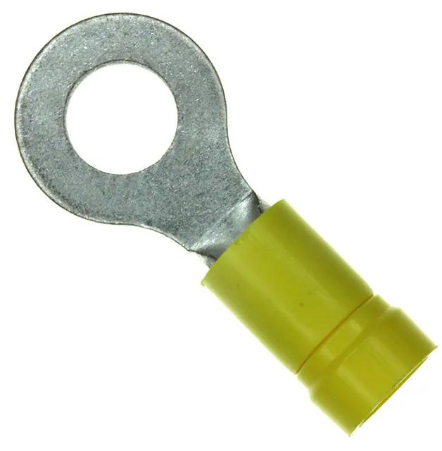This is manufactured by Panduit Corp. The manufacturer part number is PV10-14R-D. It is assigned with possible HTSUS value of 8536.90.4000. The product is rohs3 compliant. It is 0.040" (1.02mm) thick. It is designed from highly reliable vinyl insulating material. The product has an integral 1.230" (31.24mm) overall length. In addition, it is reach unaffected. The product's insulation diameter includes 0.225" (5.72mm). The terminal is a circular type. It is shipped in bulk. Moreover, the product has a wire gauge of 10-12 awg. Its outer edges are 0.520" (13.21mm) wide. Furthermore, the product is galvanized with excellent tin contact finishing. Its typical moisture sensitivity level is not applicable. The product features crimp termination style. It has a long 4 weeks standard lead time. The product consists of 1/4 stud. The splendid features of the product include brazed seam. The product is available in free hanging (in-line) configuration. It has a classic yellow colour. The product pan-term®, is a highly preferred choice for users. Insulation Option: insulated. The product is designated with the ear99 code number Moreover, it corresponds to pv10, a base product number of the product. The product is made from sturdy copper materials.