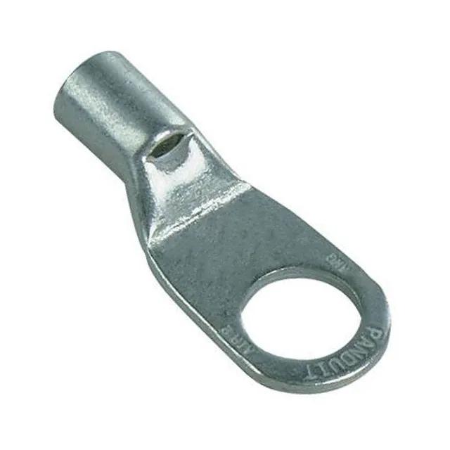 This is manufactured by Panduit Corp. The manufacturer part number is S4/0-38R-5. It is assigned with possible HTSUS value of 8536.90.4000. The product is rohs3 compliant. It is 0.140" (3.56mm) thick. The product has an integral 2.300" (58.42mm) overall length. In addition, it is reach unaffected. The terminal is a flat sided type. It is shipped in bulk. Moreover, the product has a wire gauge of 4/0 awg. Its outer edges are 1.060" (26.92mm) wide. Furthermore, the product is galvanized with excellent tin contact finishing. Its typical moisture sensitivity level is not applicable. The product features crimp, funnel opening termination style. The product consists of 3/8 stud. The product is available in free hanging (in-line) configuration. The product pan-term®, is a highly preferred choice for users. Insulation Option: non-insulated. The product is designated with the ear99 code number Moreover, it corresponds to s4/0, a base product number of the product. The product is made from sturdy copper materials.