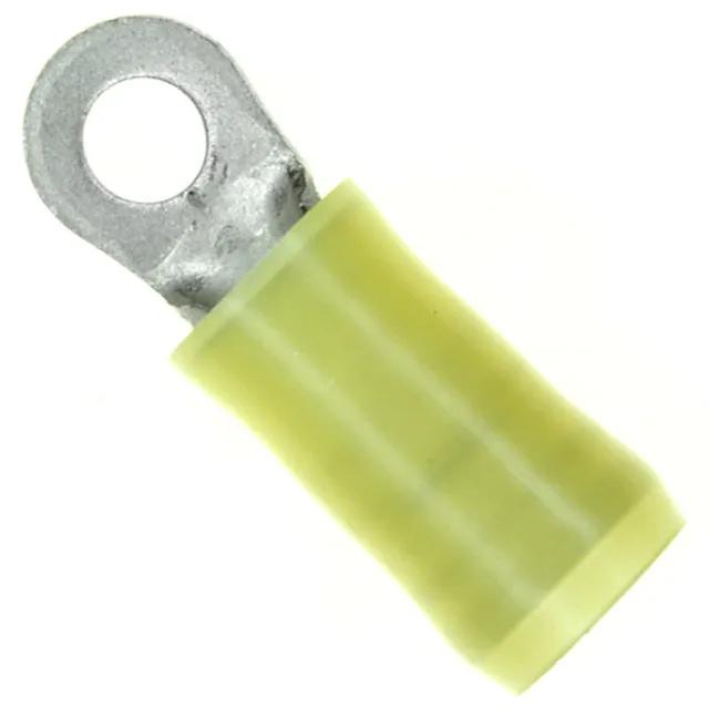This is manufactured by TE Connectivity AMP Connectors. The manufacturer part number is 8-320634-2. It is assigned with possible HTSUS value of 8536.90.4000. The product is rohs compliant. It is 0.040" (1.02mm) thick. It is designed from highly reliable polyamide (pa), nylon insulating material. The product has an integral 0.953" (24.21mm) overall length. In addition, it is vendor undefined. The product's insulation diameter includes 0.150" ~ 0.230" (3.81mm ~ 5.84mm). The terminal is a circular type. It is shipped in bulk. Moreover, the product has a wire gauge of 10-12 awg. Its outer edges are 0.281" (7.14mm) wide. Furthermore, the product is galvanized with excellent tin contact finishing. Its typical moisture sensitivity level is 1 (unlimited). The product features crimp termination style. The product consists of 6 stud. The splendid features of the product include serrated termination. The product is available in free hanging (in-line) configuration. It has a classic yellow colour. The product pidg, is a highly preferred choice for users. Insulation Option: insulated. The product is designated with the ear99 code number Moreover, it corresponds to 320634, a base product number of the product. The product is made from sturdy copper materials.