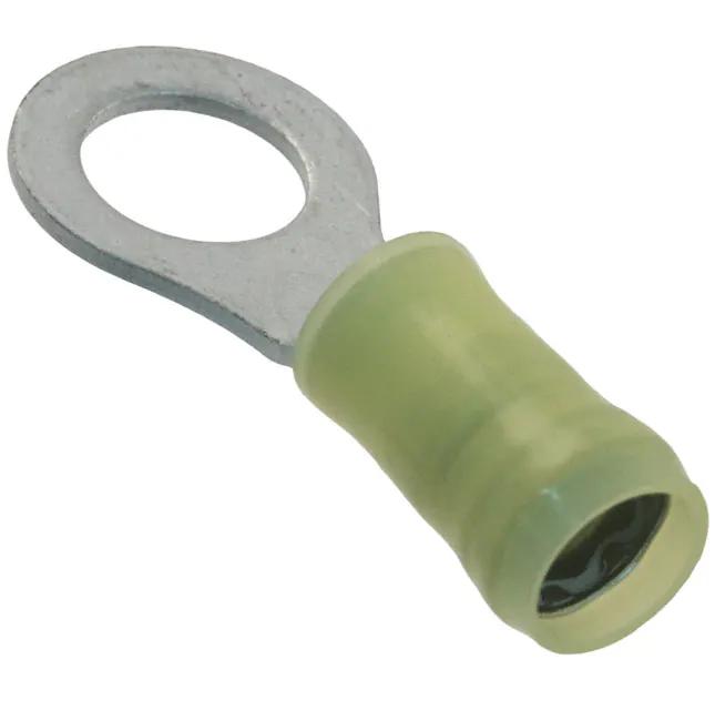 This is manufactured by TE Connectivity AMP Connectors. The manufacturer part number is 8-35111-1. It is assigned with possible HTSUS value of 8536.90.4000. The product is not applicable. It is 0.040" (1.02mm) thick. It is designed from highly reliable polyamide (pa), nylon insulating material. The product has an integral 1.322" (33.58mm) overall length. In addition, it is vendor undefined. The product's insulation diameter includes 0.150" ~ 0.250" (3.81mm ~ 6.35mm). The terminal is a circular type. It is shipped in bulk. Moreover, the product has a wire gauge of 10-12 awg. Its outer edges are 0.531" (13.49mm) wide. Furthermore, the product is galvanized with excellent tin contact finishing. Its typical moisture sensitivity level is 1 (unlimited). The product features crimp termination style. It has a long 28 weeks standard lead time. The product consists of 5/16 stud. The splendid features of the product include serrated termination. The product is available in free hanging (in-line) configuration. It has a classic yellow colour. The product pidg, is a highly preferred choice for users. Insulation Option: insulated. The product is designated with the ear99 code number Moreover, it corresponds to 35111, a base product number of the product. The product is made from sturdy copper materials.