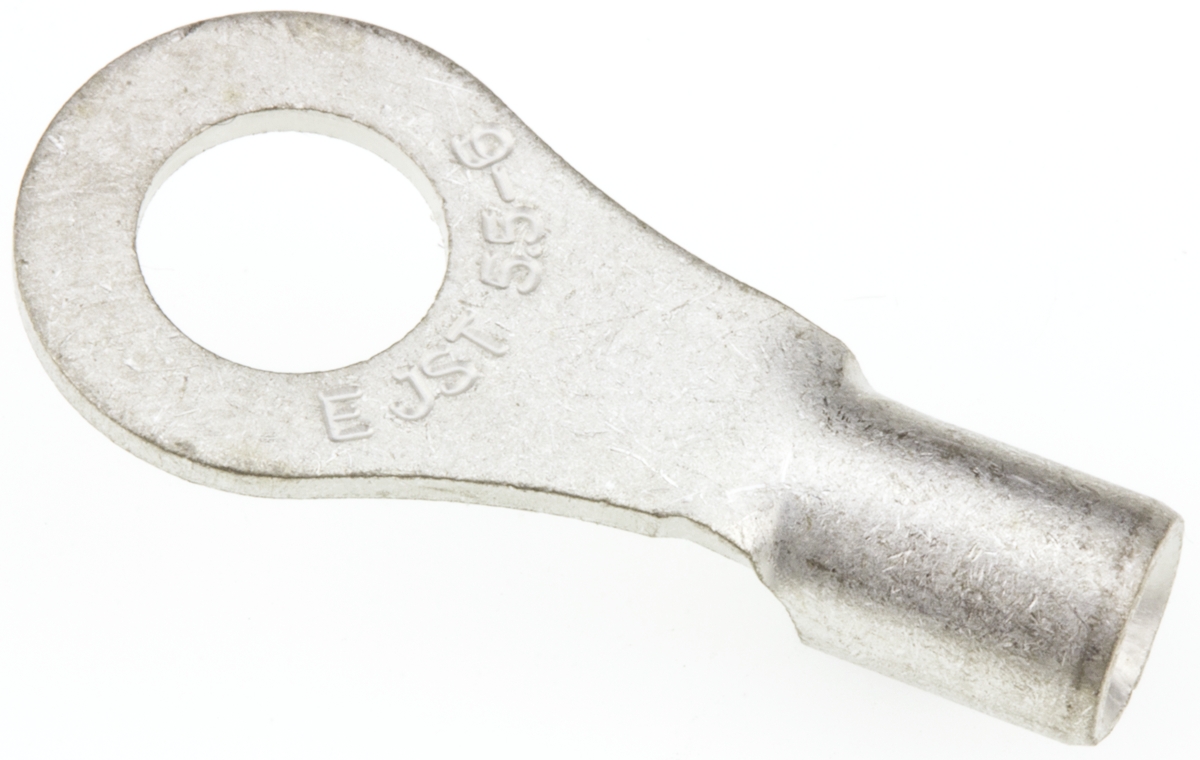 This is R Series Uninsulated Crimp Ring Terminal 6mm Stud Size 2.6mm² to 6.6mm² 12AWG to 10AWG manufactured by JST. The manufacturer part number is 5.5-6. The product r, is a highly preferred choice for users. It is 1mm thick. Insulation Option: uninsulated.