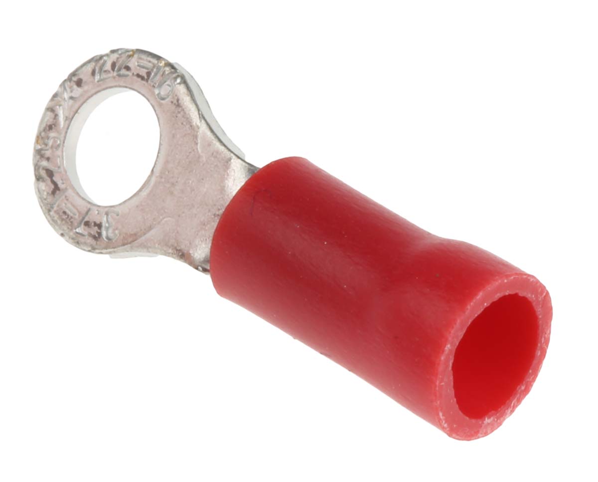 This is Insulated Tin Plated Crimp Ring Terminal M3.5 Stud Size 0.5mm² to 1.5mm² 22AWG to 16AWG Red manufactured by RS Pro. The manufacturer part number is 534-222. It is 0.8mm thick. It has a robust pvc insulation material. Insulation Option: insulated. The product is made from sturdy copper materials.