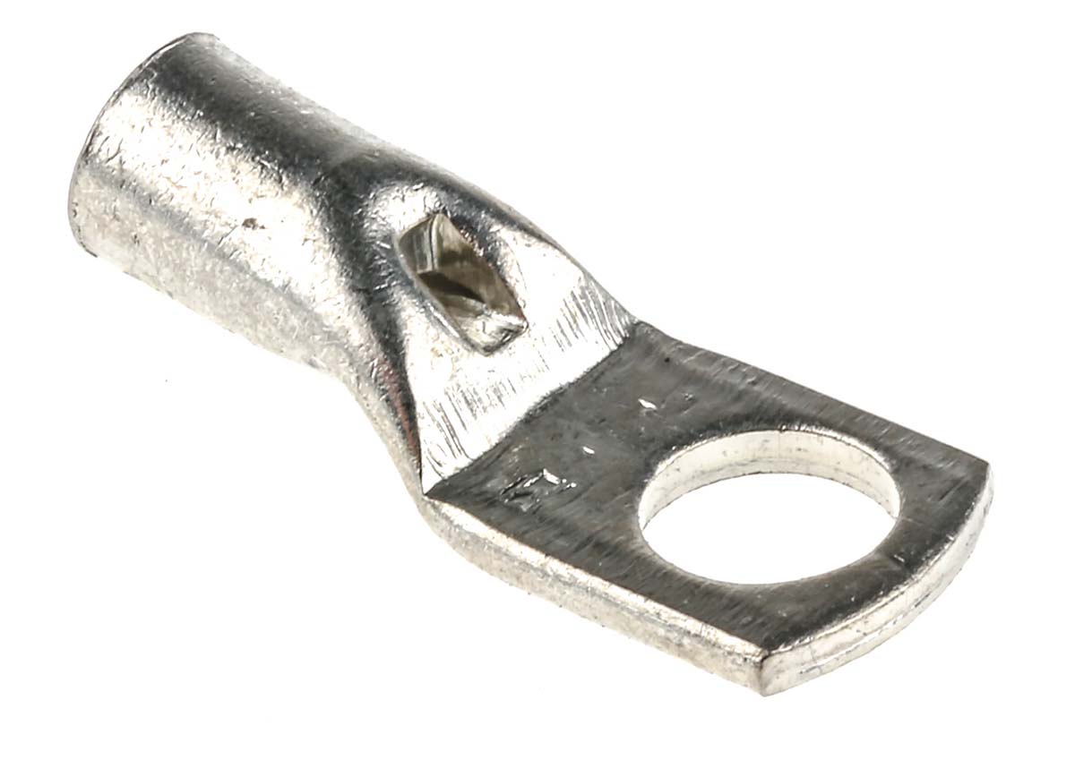 This is CT Series Uninsulated Tin Plated Tubular Ring Terminal M6 Stud Size 6mm² to 6mm² manufactured by RS Pro. The manufacturer part number is 119-160. Insulation Option: uninsulated. The product is made from sturdy copper materials.