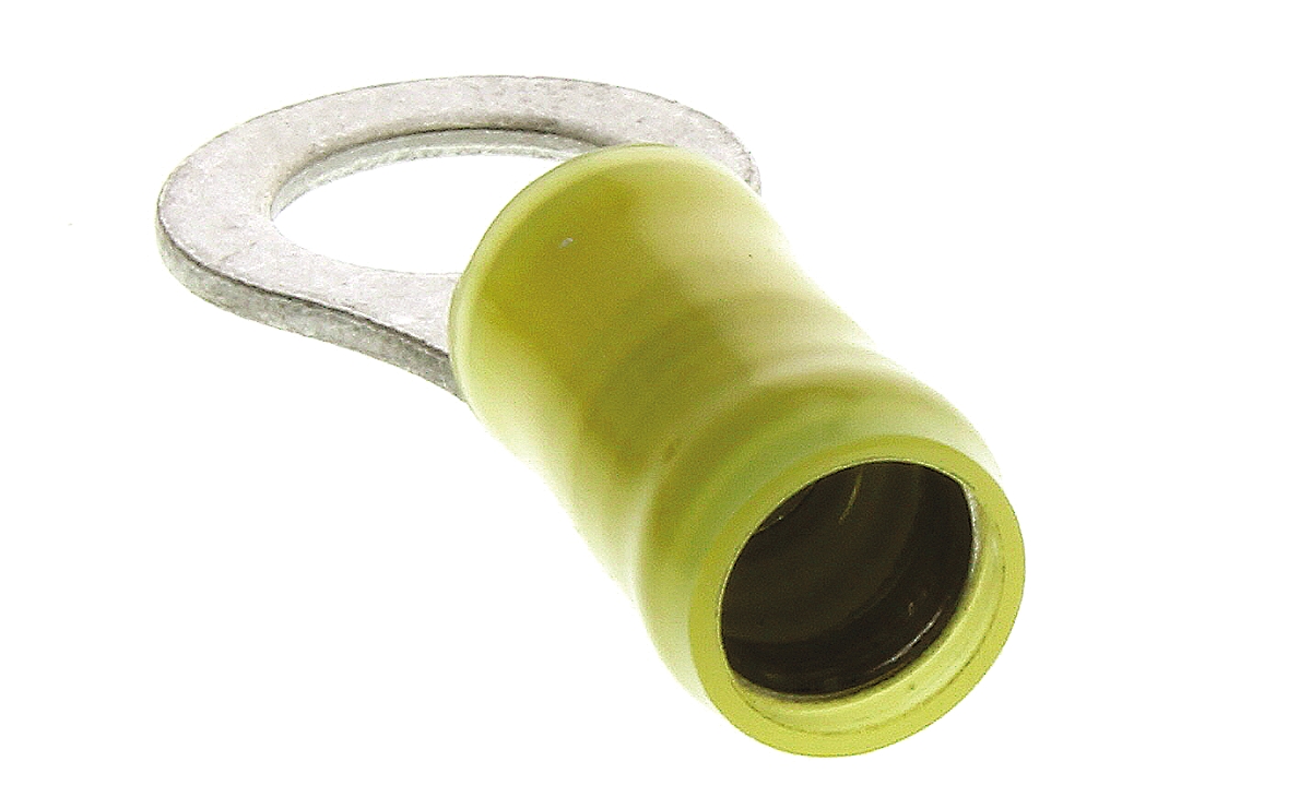 This is PIDG Series Insulated Tin Plated Crimp Ring Terminal M8 Stud Size 2.6mm² to 6.6mm² 12AWG to 10AWG manufactured by TE Connectivity. The manufacturer part number is 320576. The product pidg, is a highly preferred choice for users. It has a robust nylon insulation material. Insulation Option: insulated. The product is made from sturdy copper materials.