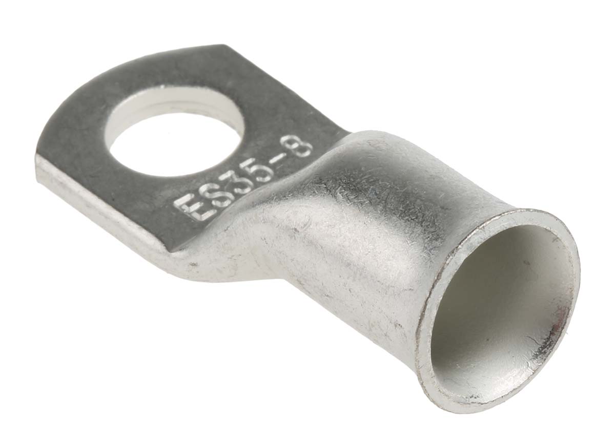 This is Uninsulated Tin Plated Tubular Ring Terminal 8mm Stud Size 35mm² to 35mm² manufactured by RS Pro. The manufacturer part number is 841-7636. Insulation Option: uninsulated. The product is made from sturdy copper materials.