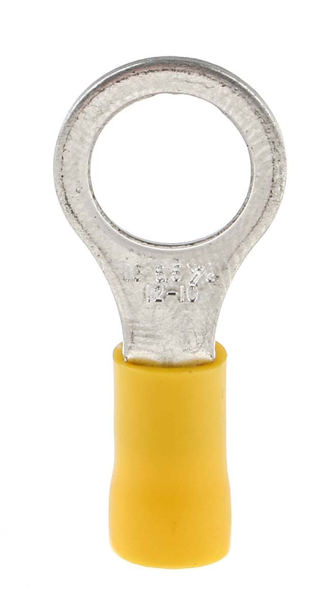 This is Insulated Tin Plated Crimp Ring Terminal M10 Stud Size 2.5mm² to 6mm² 12AWG to 10AWG Yellow manufactured by RS Pro. The manufacturer part number is 208-2537. It is 1mm thick. It has a robust pvc insulation material. Insulation Option: insulated. The product is made from sturdy copper materials.