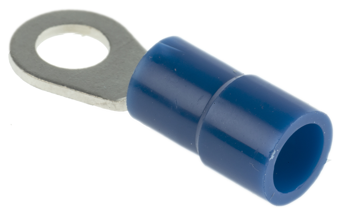 This is Insulated Crimp Ring Terminal 4.3mm Stud Size 1.5mm² to 2.5mm² Wire Size Blue manufactured by RS PRO. The manufacturer part number is 178-7271. It is 0.8mm thick. It has a robust vinyl insulation material. Insulation Option: insulated. It has a maximum operating temperature of +105°c. The product is made from sturdy copper materials.