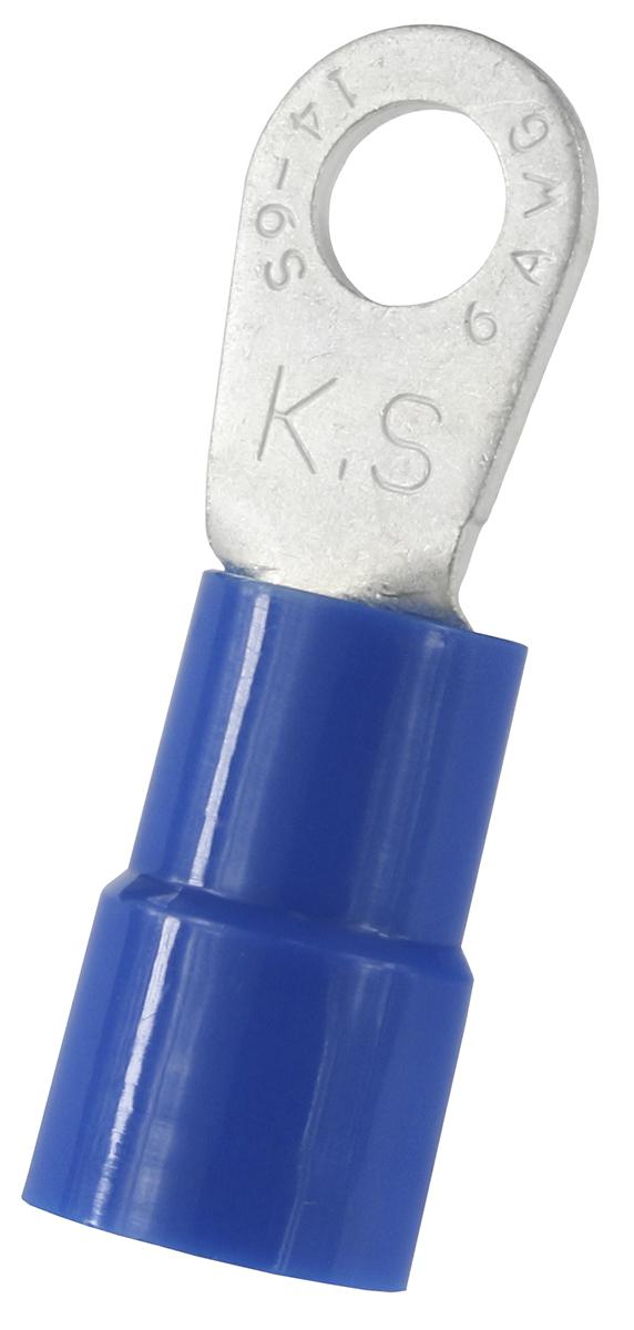 This is Insulated Crimp Ring Terminal 6.4mm Stud Size to 14mm² Wire Size Blue manufactured by RS PRO. The manufacturer part number is 178-8645. It is 1.5mm thick. It has a robust nylon insulation material. Insulation Option: insulated. It has a maximum operating temperature of +105°c. The product is made from sturdy copper materials.