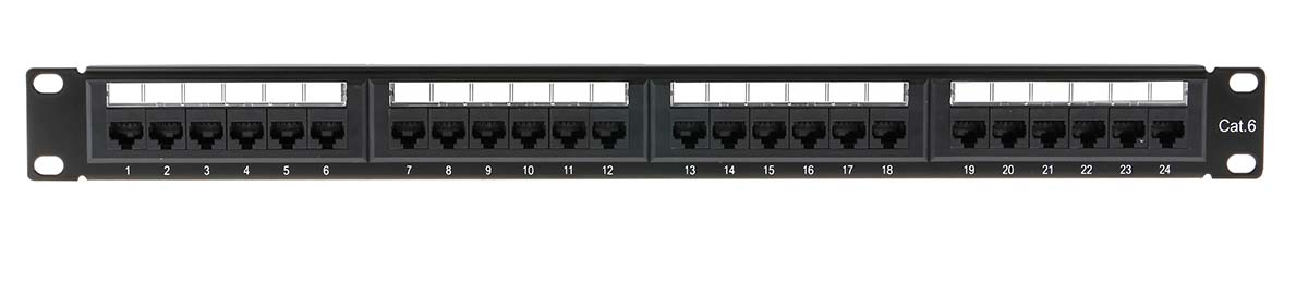 This is Cat6 24 Port RJ45 RJ Patch Panel UTP 1U Black manufactured by RS Pro. The manufacturer part number is 556-635. This product features 24 number of ports. In addition, the height is 44.45mm. Furthermore, the product is 483mm wide. The product comes in 40mm depth. The item is shielded with a utp.