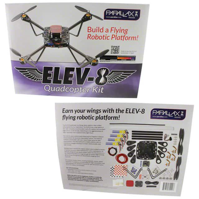 This is manufactured by Parallax Inc.. The manufacturer part number is 80000. Additionally, [Utilised IC / Part] is the used part of the product. It is assigned with possible HTSUS value of 8471.41.0150. It is shipped in bulk. The product elev-8, is a highly preferred choice for users. Its typical moisture sensitivity level is 1 (unlimited). The product is available in quadcopter configuration. Contents Include: board(s), chassis, components, hardware, motor(s), propeller(s). The product is designated with the 3a001a2c code number
