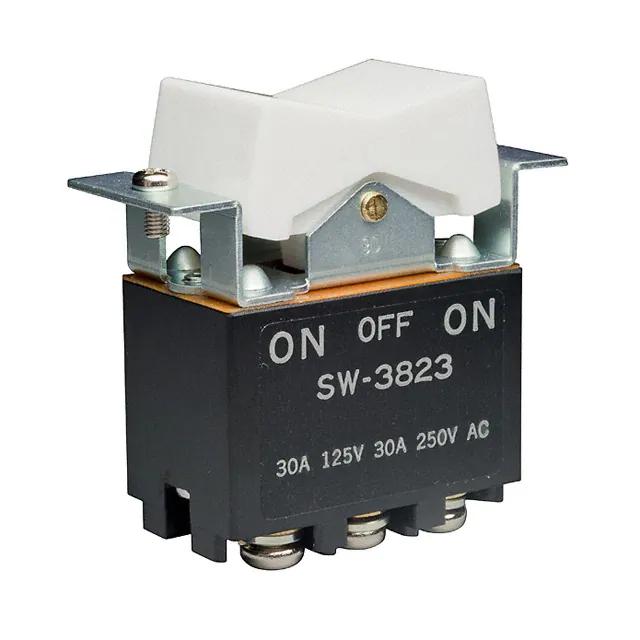 This is manufactured by NKK Switches. The manufacturer part number is SW3823/U. It is assigned with possible HTSUS value of 8536.50.9065. The product is rohs3 compliant. The product offers long-lasting services of 25,000 cycles. Moreover, it has screw terminal terminal style. 30 v of DC voltage rating. The product has -10°c ~ 70°c operating temperature range. The product also provide mechanical stability with 50,000 cycles. The product exhibits 125 v of AC voltage rating. In addition, it is reach unaffected. It is shipped in bulk. It is designed as a on-off-on switching function. Its typical moisture sensitivity level is 1 (unlimited). The actuator marking of the product corelates with no marking. It has an integral dpdt circuit. It has a long 39 weeks standard lead time. Additionally, the product's output is 30a (ac/dc) The product is available in panel mount, flange configuration. The product sw, is a highly preferred choice for users. It is made from white. The product carries concave (standard v) actuator. Moreover, it corresponds to sw3823, a base product number of the product. The product is designated with the ear99 code number
