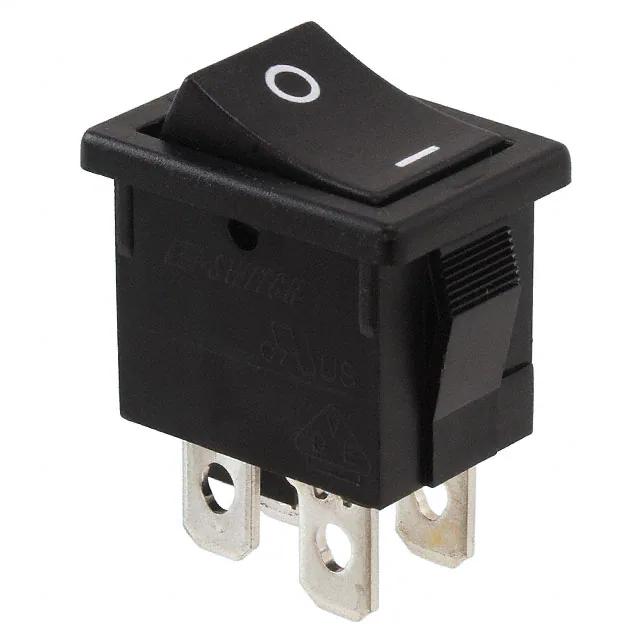 This is manufactured by E-Switch. The manufacturer part number is R1973BBLKBLKGF0. It is assigned with possible HTSUS value of 8536.50.9065. The product is rohs3 compliant. The product offers long-lasting services of 10,000 cycles. Moreover, it has quick connect - 0.187" (4.7mm) terminal style. The product has -30°c ~ 65°c operating temperature range. It also has a rectangular - 19.20mm x 12.80mm dimensional features. The product also provide mechanical stability with 30,000 cycles. The product exhibits 125 v of AC voltage rating. In addition, it is reach unaffected. It is shipped in bulk. It is designed as a on-off switching function. Its typical moisture sensitivity level is 1 (unlimited). The actuator marking of the product corelates with o i. It has an integral dpst circuit. It has a long 14 weeks standard lead time. Additionally, the product's output is 9a (ac) The product is available in panel mount, snap-in configuration. The product r1973, is a highly preferred choice for users. It is made from black. The product carries concave (curved) actuator. Moreover, it corresponds to r1973, a base product number of the product. The product is designated with the ear99 code number