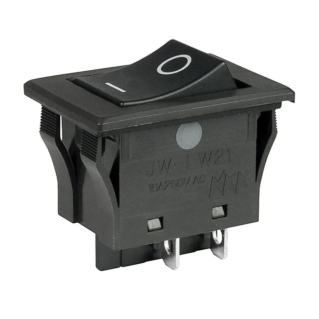This is manufactured by NKK Switches. The manufacturer part number is JWLW21RA1A. It is assigned with possible HTSUS value of 8536.50.9065. The product is rohs3 compliant. The product offers long-lasting services of 25,000 cycles. Moreover, it has solder, quick connect - 0.187" (4.7mm) terminal style. The product has -25°c ~ 85°c operating temperature range. It also has a rectangular - 30.70mm x 20.50mm dimensional features. The product also provide mechanical stability with 25,000 cycles. The product exhibits 125 v of AC voltage rating. In addition, it is reach unaffected. It is shipped in bulk. It is designed as a on-off switching function. Its typical moisture sensitivity level is 1 (unlimited). The actuator marking of the product corelates with o i. It has an integral dpst circuit. It has a long 43 weeks standard lead time. Additionally, the product's output is 16a (ac) It is IP rated with ip67 - dust tight, waterproof. The splendid features of the product include epoxy sealed terminals. The product is available in panel mount, snap-in configuration. The product jw, is a highly preferred choice for users. It is made from black. The product carries concave (curved) actuator. Moreover, it corresponds to jwlw21, a base product number of the product. The product is designated with the ear99 code number
