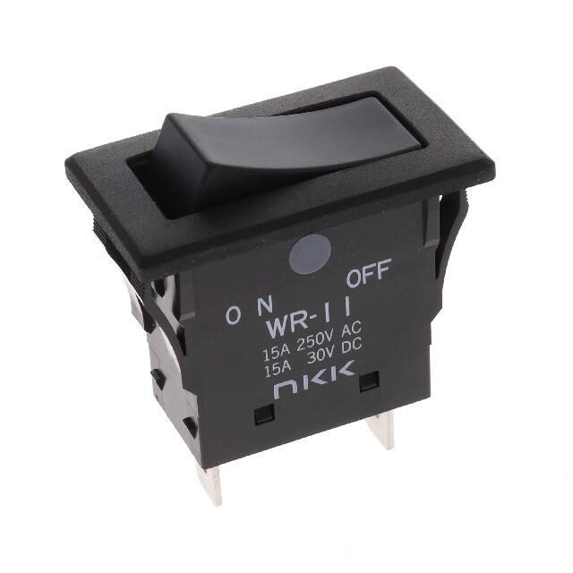 This is manufactured by NKK Switches. The manufacturer part number is WR11AF/CUL. It is assigned with possible HTSUS value of 8536.50.9065. The product is rohs3 compliant. The product offers long-lasting services of 15,000 cycles. Moreover, it has quick connect - 0.250" (6.3mm) terminal style. 30 v of DC voltage rating. The product has -25°c ~ 85°c operating temperature range. It also has a rectangular - 34.20mm x 17.20mm dimensional features. The product also provide mechanical stability with 30,000 cycles. The product exhibits 125 v of AC voltage rating. In addition, it is reach unaffected. It is shipped in bulk. It is designed as a on-off switching function. Its typical moisture sensitivity level is 1 (unlimited). The actuator marking of the product corelates with no marking. It has an integral spst circuit. It has a long 20 weeks standard lead time. Additionally, the product's output is 15a (ac/dc) It is IP rated with ip67 - dust tight, waterproof. The splendid features of the product include epoxy sealed terminals. The product is available in panel mount, snap-in configuration. The product wr, is a highly preferred choice for users. It is made from black. The product carries concave (curved) actuator. Moreover, it corresponds to wr11af, a base product number of the product. The product is designated with the ear99 code number