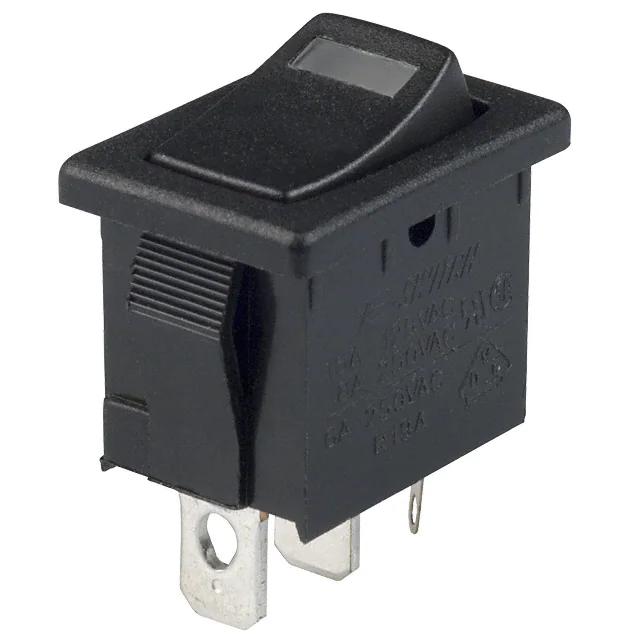 This is manufactured by E-Switch. The manufacturer part number is R1966ABLKBLKEFYEL. It is assigned with possible HTSUS value of 8536.50.9065. The product is rohs3 compliant. The product offers long-lasting services of 10,000 cycles. Moreover, it has quick connect - 0.187" (4.7mm) terminal style. The product has -30°c ~ 65°c operating temperature range. It also has a rectangular - 19.40mm x 13.00mm dimensional features. The product also provide mechanical stability with 30,000 cycles. The product exhibits 125 v of AC voltage rating. In addition, it is reach unaffected. It is supplied with led, yellow illumination. It is shipped in bulk. It is designed as a on-off switching function. Its typical moisture sensitivity level is 1 (unlimited). The actuator marking of the product corelates with no marking. It has an integral spst circuit. It has a long 14 weeks standard lead time. Additionally, the product's output is 15a (ac) The product is available in panel mount, snap-in configuration. The product r1966, is a highly preferred choice for users. It is made from black. The product carries concave (curved) - illuminated actuator. The nominal illumination voltage of the product is 2.1 vdc. Moreover, it corresponds to r1966, a base product number of the product. The product is designated with the ear99 code number