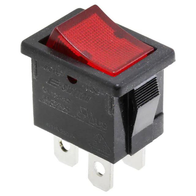 This is manufactured by E-Switch. The manufacturer part number is R1973BBLKRILKF1. It is assigned with possible HTSUS value of 8536.50.9065. The product is rohs3 compliant. The product offers long-lasting services of 10,000 cycles. Moreover, it has quick connect - 0.187" (4.7mm) terminal style. The product has -30°c ~ 65°c operating temperature range. It also has a rectangular - 19.20mm x 12.80mm dimensional features. The product also provide mechanical stability with 30,000 cycles. The product exhibits 125 v of AC voltage rating. In addition, it is reach unaffected. It is supplied with neon, red illumination. It is shipped in bulk. It is designed as a on-off switching function. Its typical moisture sensitivity level is 1 (unlimited). The actuator marking of the product corelates with o on end. It has an integral dpst circuit. It has a long 15 weeks standard lead time. Additionally, the product's output is 9a (ac) The product is available in panel mount, snap-in configuration. The product r1973, is a highly preferred choice for users. It is made from red. The product carries concave (curved) - illuminated actuator. The nominal illumination voltage of the product is 125 vac. Moreover, it corresponds to r1973, a base product number of the product. The product is designated with the ear99 code number
