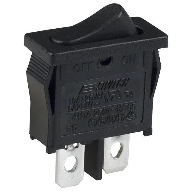 This is manufactured by E-Switch. The manufacturer part number is R6BBLKBLKEF. It is assigned with possible HTSUS value of 8536.50.9065. The product is rohs3 compliant. The product offers long-lasting services of 10,000 cycles. Moreover, it has quick connect - 0.187" (4.7mm) terminal style. The product has -20°c ~ 65°c operating temperature range. It also has a rectangular - 19.20mm x 6.65mm dimensional features. The product also provide mechanical stability with 30,000 cycles. The product exhibits 125 v of AC voltage rating. In addition, it is reach unaffected. It is shipped in bulk. It is designed as a off-mom switching function. Its typical moisture sensitivity level is 1 (unlimited). The actuator marking of the product corelates with no marking. It has an integral spst-no circuit. It has a long 14 weeks standard lead time. Additionally, the product's output is 10a (ac) The product is available in panel mount, snap-in configuration. The product r6, is a highly preferred choice for users. It is made from black. The product carries concave (curved) actuator. Moreover, it corresponds to r6bblkbl, a base product number of the product. The product is designated with the ear99 code number