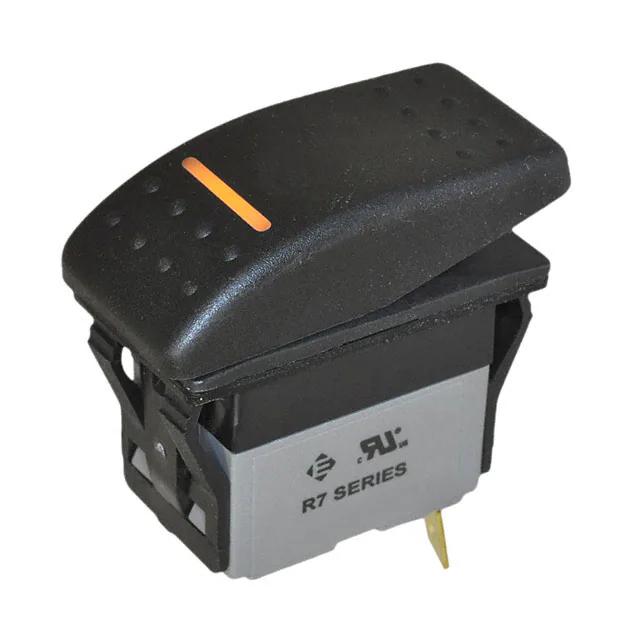 This is manufactured by E-Switch. The manufacturer part number is R711FB2-SXXX2BDANW. It is assigned with possible HTSUS value of 8536.50.9065. The product is rohs3 compliant. The product offers long-lasting services of 10,000 cycles. Moreover, it has quick connect - 0.250" (6.3mm) terminal style. 30 v of DC voltage rating. The product has 0°c ~ 55°c operating temperature range. It also has a rectangular - 37.00mm x 21.10mm dimensional features. In addition, it is reach unaffected. It is supplied with led, amber illumination. It is shipped in bulk. It is designed as a on-off switching function. Its typical moisture sensitivity level is 1 (unlimited). The actuator marking of the product corelates with no marking. It has an integral spst circuit. It has a long 16 weeks standard lead time. Additionally, the product's output is 16a (dc) It is IP rated with ip67 - dust tight, waterproof. The product is available in panel mount, snap-in configuration. The product r7, is a highly preferred choice for users. It is made from black. The product carries convex (reverse v) - illuminated actuator. The nominal illumination voltage of the product is 12 vdc. Moreover, it corresponds to r711, a base product number of the product. The product is designated with the ear99 code number