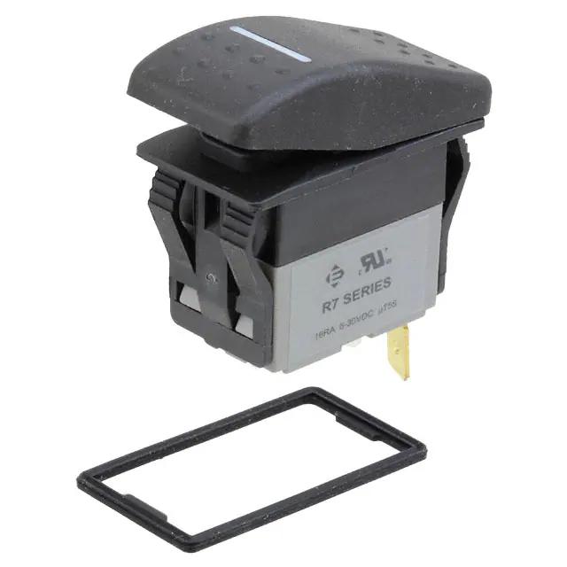 This is manufactured by E-Switch. The manufacturer part number is R711FB2-SXXX2BDGNW. It is assigned with possible HTSUS value of 8536.50.9065. The product is rohs3 compliant. The product offers long-lasting services of 10,000 cycles. Moreover, it has quick connect - 0.250" (6.3mm) terminal style. 30 v of DC voltage rating. The product has 0°c ~ 55°c operating temperature range. It also has a rectangular - 37.00mm x 21.10mm dimensional features. In addition, it is reach unaffected. It is supplied with led, green illumination. It is shipped in bulk. It is designed as a on-off switching function. Its typical moisture sensitivity level is 1 (unlimited). The actuator marking of the product corelates with no marking. It has an integral spst circuit. It has a long 16 weeks standard lead time. Additionally, the product's output is 16a (dc) It is IP rated with ip67 - dust tight, waterproof. The product is available in panel mount, snap-in configuration. The product r7, is a highly preferred choice for users. It is made from black. The product carries convex (reverse v) - illuminated actuator. The nominal illumination voltage of the product is 12 vdc. Moreover, it corresponds to r711, a base product number of the product. The product is designated with the ear99 code number