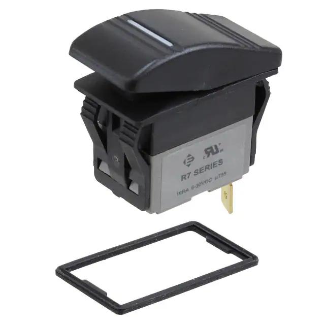 This is manufactured by E-Switch. The manufacturer part number is R711FC2-SXXX2BDGNW. It is assigned with possible HTSUS value of 8536.50.9065. The product is rohs3 compliant. The product offers long-lasting services of 10,000 cycles. Moreover, it has quick connect - 0.250" (6.3mm) terminal style. 30 v of DC voltage rating. The product has 0°c ~ 55°c operating temperature range. It also has a rectangular - 37.00mm x 21.10mm dimensional features. In addition, it is reach unaffected. It is supplied with led, green illumination. It is shipped in bulk. It is designed as a on-off switching function. Its typical moisture sensitivity level is 1 (unlimited). The actuator marking of the product corelates with no marking. It has an integral spst circuit. It has a long 16 weeks standard lead time. Additionally, the product's output is 16a (dc) It is IP rated with ip67 - dust tight, waterproof. The product is available in panel mount, snap-in configuration. The product r7, is a highly preferred choice for users. It is made from black. The product carries convex (reverse v) - illuminated actuator. The nominal illumination voltage of the product is 12 vdc. Moreover, it corresponds to r711, a base product number of the product. The product is designated with the ear99 code number