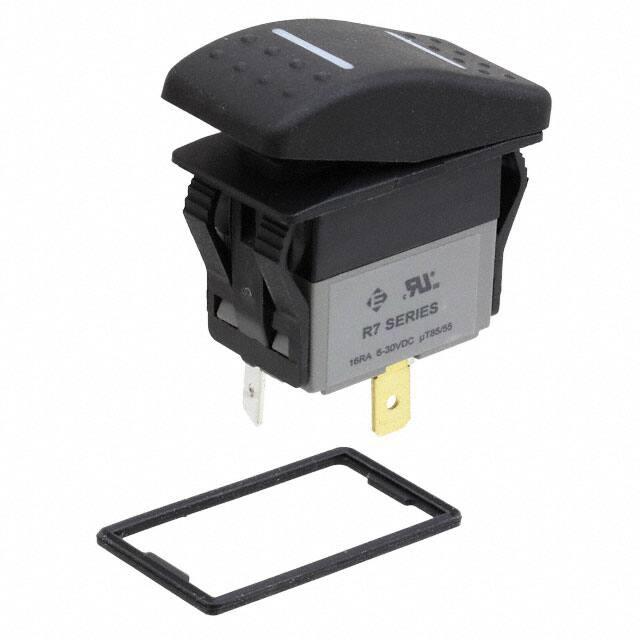 This is manufactured by E-Switch. The manufacturer part number is R713FB4-SXXX2B4GRW. It is assigned with possible HTSUS value of 8536.50.9065. The product is rohs3 compliant. The product offers long-lasting services of 10,000 cycles. Moreover, it has quick connect - 0.250" (6.3mm) terminal style. 30 v of DC voltage rating. The product has 0°c ~ 55°c operating temperature range. It also has a rectangular - 37.00mm x 21.10mm dimensional features. In addition, it is reach unaffected. It is supplied with led, green/red illumination. It is shipped in bulk. It is designed as a on-off-on switching function. Its typical moisture sensitivity level is 1 (unlimited). The actuator marking of the product corelates with no marking. It has an integral spdt circuit. It has a long 16 weeks standard lead time. Additionally, the product's output is 16a (dc) It is IP rated with ip67 - dust tight, waterproof. The product is available in panel mount, snap-in configuration. The product r7, is a highly preferred choice for users. It is made from black. The product carries convex (reverse v) - illuminated actuator. The nominal illumination voltage of the product is 12 vdc. Moreover, it corresponds to r713, a base product number of the product. The product is designated with the ear99 code number