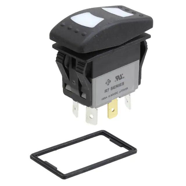 This is manufactured by E-Switch. The manufacturer part number is R723FE3-SXXX2B4GRW. It is assigned with possible HTSUS value of 8536.50.9065. The product is rohs3 compliant. The product offers long-lasting services of 10,000 cycles. Moreover, it has quick connect - 0.250" (6.3mm) terminal style. 30 v of DC voltage rating. The product has 0°c ~ 55°c operating temperature range. It also has a rectangular - 37.00mm x 21.10mm dimensional features. In addition, it is reach unaffected. It is supplied with led, green/red illumination. It is shipped in bulk. It is designed as a on-off-on switching function. Its typical moisture sensitivity level is 1 (unlimited). The actuator marking of the product corelates with no marking. It has an integral dpdt circuit. It has a long 16 weeks standard lead time. Additionally, the product's output is 16a (dc) It is IP rated with ip67 - dust tight, waterproof. The product is available in panel mount, snap-in configuration. The product r7, is a highly preferred choice for users. It is made from black. The product carries convex (reverse v) - illuminated actuator. The nominal illumination voltage of the product is 12 vdc. Moreover, it corresponds to r723, a base product number of the product. The product is designated with the ear99 code number