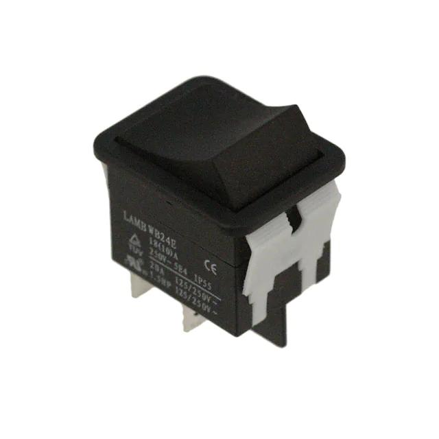 This is manufactured by E-Switch. The manufacturer part number is WB24ED1100. It is assigned with possible HTSUS value of 8536.50.9065. The product is rohs3 compliant. Moreover, it has quick connect - 0.250" (6.3mm) terminal style. The product has -20°c ~ 65°c operating temperature range. It also has a rectangular - 30.00mm x 22.00mm dimensional features. The product exhibits 125 v of AC voltage rating. In addition, it is reach unaffected. It is shipped in bulk. It is designed as a off-mom switching function. Its typical moisture sensitivity level is 1 (unlimited). The actuator marking of the product corelates with no marking. It has an integral dpst-no circuit. It has a long 14 weeks standard lead time. Additionally, the product's output is 20a (ac) It is IP rated with ip55 - dust protected, water resistant. The product is available in panel mount, snap-in configuration. The product wb2, lamb, is a highly preferred choice for users. It is made from black. The product carries concave (curved) actuator. Moreover, it corresponds to wb24, a base product number of the product. The product is designated with the ear99 code number