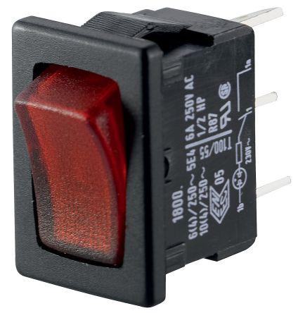 This is Illuminated SPST On-(Off) Rocker Switch Panel manufactured by Marquardt. The manufacturer part number is 1800.1102. It features a <100mω contact resistance. The product is available in panel mount configuration. Whereas, the minimum operating temperature of the product is -20 (actuating side) °c, -20 (terminal side) °c. The product also provide mechanical stability with 100000operations. It has a maximum operating temperature of +100 (terminal side) °c, +55 (actuating side) °c. The terminal is a quick connect type. The product is made from sturdy silver materials.