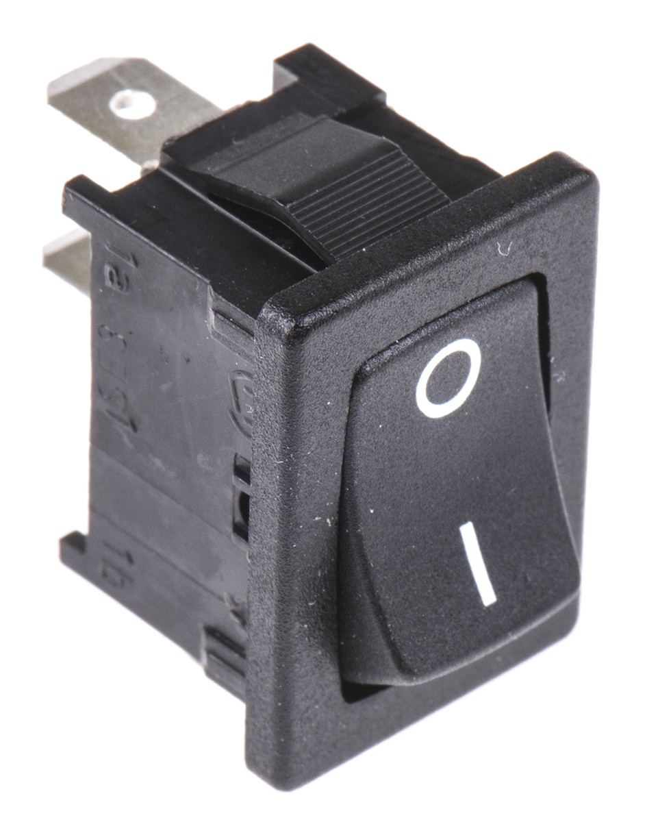 This is SPST On-Off Rocker Switch Panel manufactured by Marquardt. The manufacturer part number is 1801.1146. The product is available in panel mount configuration. The terminal is a quick connect type.