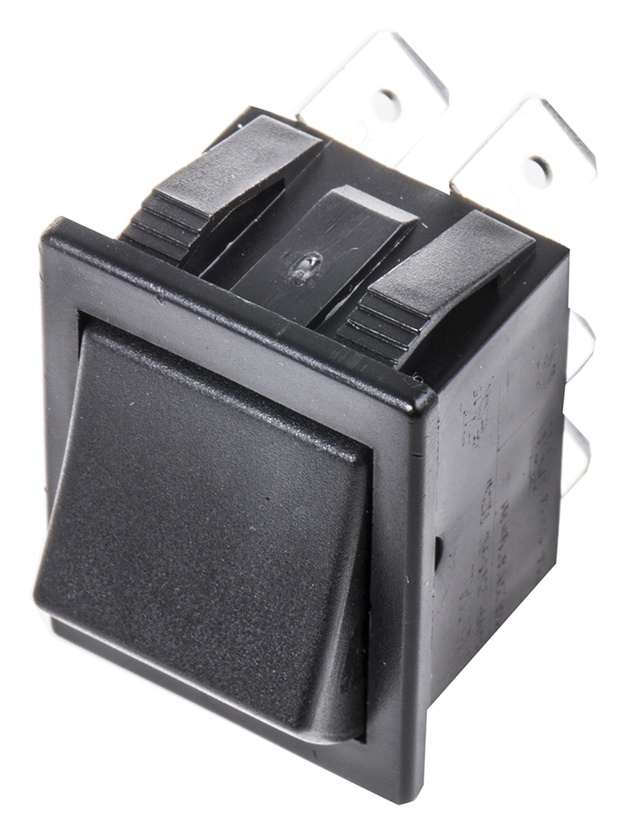 This is DPDT On-(On) Rocker Switch Panel manufactured by Arcolectric. The manufacturer part number is C1561ALAAA. The product is available in panel mount configuration. The terminal is a quick connect type.