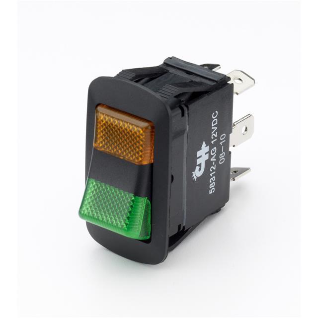 This is manufactured by Littelfuse Inc.. The manufacturer part number is 58312-AG. It is assigned with possible HTSUS value of 8536.50.9065. The product is rohs3 compliant. Moreover, it has quick connect - 0.250" (6.3mm) terminal style. 12 v of DC voltage rating. It also has a rectangular - 36.83mm x 21.08mm dimensional features. In addition, it is reach unaffected. It is supplied with led, amber/green illumination. It is shipped in bulk. It is designed as a on-off-on switching function. Its typical moisture sensitivity level is 1 (unlimited). The actuator marking of the product corelates with no marking. It has an integral spdt circuit. It has a long 22 weeks standard lead time. Additionally, the product's output is 25a (dc) It is IP rated with ip66 - dust tight, water resistant. The product is available in panel mount, snap-in configuration. The product 58312, is a highly preferred choice for users. It is made from black. The product carries concave (curved) - illuminated actuator. The nominal illumination voltage of the product is 12 vdc. The product is designated with the ear99 code number