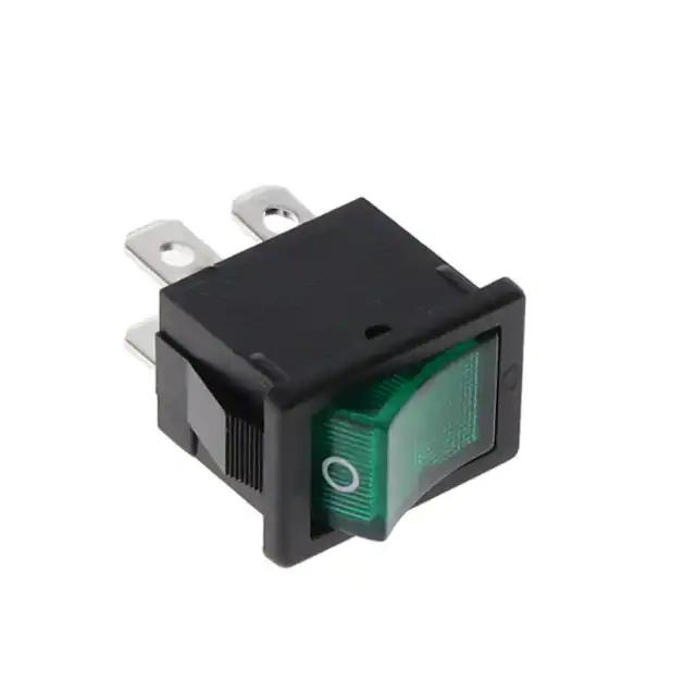 This is manufactured by E-Switch. The manufacturer part number is R1973BBLKGILKF1. It is assigned with possible HTSUS value of 8536.50.9065. The product is rohs3 compliant. The product offers long-lasting services of 10,000 cycles. Moreover, it has quick connect - 0.187" (4.7mm) terminal style. The product has -30°c ~ 65°c operating temperature range. It also has a rectangular - 19.20mm x 12.80mm dimensional features. The product also provide mechanical stability with 30,000 cycles. The product exhibits 125 v of AC voltage rating. It is supplied with neon, green illumination. It is shipped in bulk. It is designed as a on-off switching function. Its typical moisture sensitivity level is 1 (unlimited). The actuator marking of the product corelates with no marking. It has an integral dpst circuit. It has a long 14 weeks standard lead time. Additionally, the product's output is 9a (ac) The product is available in panel mount, snap-in configuration. The product r1973, is a highly preferred choice for users. It is made from green. The product carries concave (curved) - illuminated actuator. The nominal illumination voltage of the product is 125 vac. The product is designated with the ear99 code number