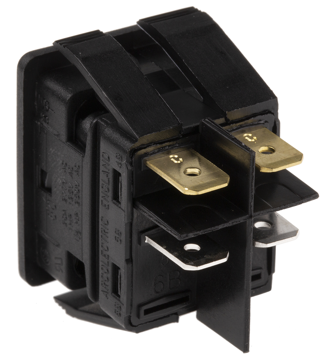 This is Double Pole Single Throw (DPST) On-Off Rocker Switch Panel Mount manufactured by Arcolectric (Bulgin) Ltd. The manufacturer part number is C6050ALAAC. The product is available in panel mount configuration. The terminal is a quick connect type.