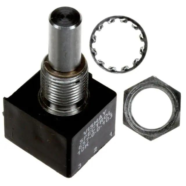 This is manufactured by Vishay Spectrol. The manufacturer part number is 657BR0103. It is assigned with possible HTSUS value of 8533.40.8070. The product is rohs3 compliant. Moreover, it has solder lug terminal style. It exhibits an excellent temperature coefficient of ±600ppm/°c. The product features power and watts of 1w. It has adjustment flexibility and is adjusted at a user defined. Built in Switch Info: none. Moreover, the given resistance of the product is 10k. The actuator is a 0.875" (22.23mm) long. It features ±20% of tolerance value. It is shipped in bulk. Consist of 1 turns. The product is equipped with a conductive plastic resistive material. Allows 250° rotation. It features a linear taper. Its typical moisture sensitivity level is not applicable. The actuator has a 0.2497" (6.34mm) diameter. It has a long 23 weeks standard lead time. Has a body size of rectangular - 0.687" x 0.622" face (17.46mm x 15.81mm). The splendid features of the product include sealed. The product is available in panel mount configuration. The product 657, is a highly preferred choice for users. It comprises 1 gangs. The product has bushing thread of 3/8-32. The product carries round actuator. The product is designated with the ear99 code number