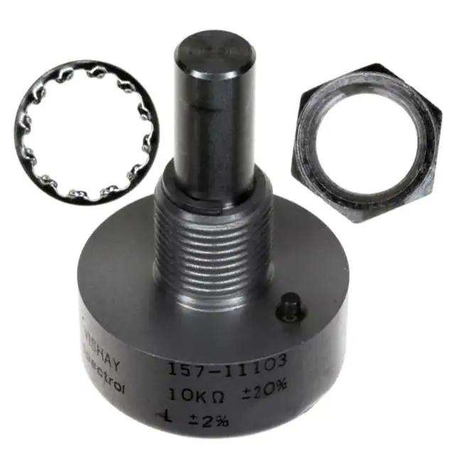 This is manufactured by Vishay Spectrol. The manufacturer part number is 157B103MX. It is assigned with possible HTSUS value of 8533.40.8070. The product is rohs3 compliant. Moreover, it has solder turret terminal style. It exhibits an excellent temperature coefficient of ±600ppm/°c. The product features power and watts of 1w. It has adjustment flexibility and is adjusted at a user defined. Built in Switch Info: none. Moreover, the given resistance of the product is 10k. The actuator is a 0.875" (22.23mm) long. It features ±20% of tolerance value. It is shipped in bulk. Consist of 1 turns. The product is equipped with a conductive plastic resistive material. Allows continuous rotation. It features a linear taper. Its typical moisture sensitivity level is not applicable. The actuator has a 0.2497" (6.34mm) diameter. It has a long 22 weeks standard lead time. Has a body size of round - 0.875" dia (22.23mm). The splendid features of the product include sealed. The product is available in panel mount configuration. The product 157, is a highly preferred choice for users. It comprises 1 gangs. The product has bushing thread of 3/8-32. The product carries round actuator. The product is designated with the ear99 code number