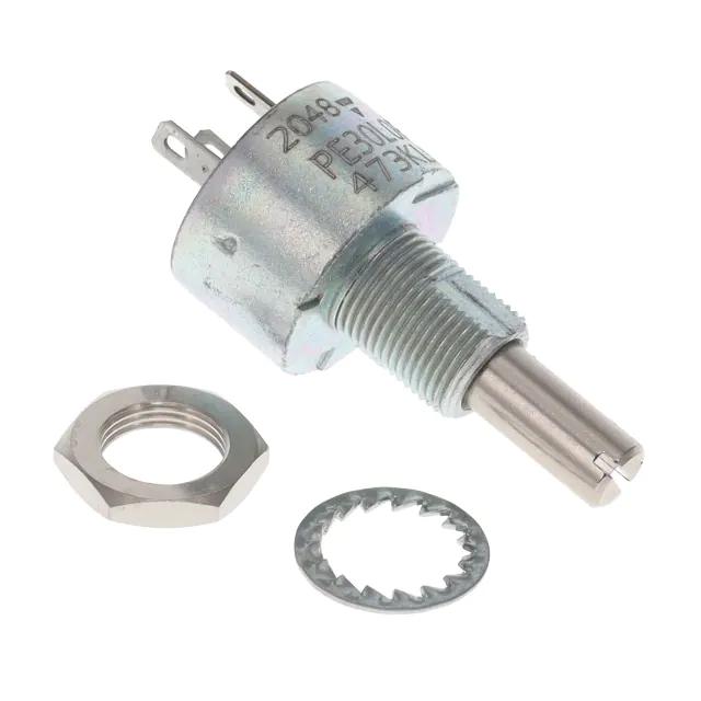 This is manufactured by Vishay Sfernice. The manufacturer part number is PE30L0FL473KLB. It is assigned with possible HTSUS value of 8533.40.8050. The product is rohs3 compliant. Moreover, it has solder lug terminal style. It exhibits an excellent temperature coefficient of ±150ppm/°c. The product features power and watts of 1.5w. It has adjustment flexibility and is adjusted at a user defined. Built in Switch Info: none. Moreover, the given resistance of the product is 47k. The actuator is a 0.984" (25.00mm) long. It features ±10% of tolerance value. It is shipped in box. Consist of 1 turns. The product is equipped with a cermet resistive material. Allows 300° rotation. It features a logarithmic taper. Its typical moisture sensitivity level is not applicable. The actuator has a 0.236" (6.00mm) diameter. It has a long 14 weeks standard lead time. Has a body size of round - 0.776" dia (19.70mm). The product is available in panel mount configuration. The product pe30, is a highly preferred choice for users. It comprises 1 gangs. The product has bushing thread of m10 x 0.75. The product carries slotted actuator. The product is designated with the ear99 code number