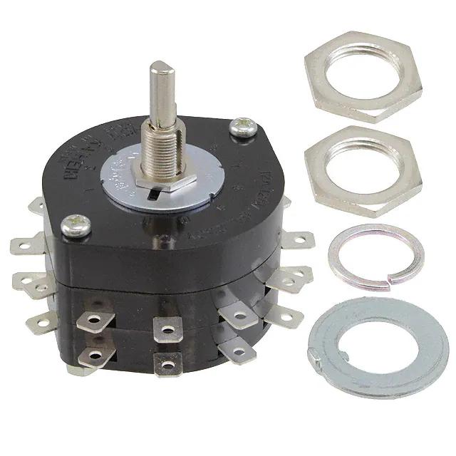 This is manufactured by NKK Switches. The manufacturer part number is HS16-2SN. It is assigned with possible HTSUS value of 8536.50.9025. The product is rohs3 compliant. Moreover, it has solder lug terminal style. It also has a circular - 10.30mm dia dimensional features. The product carries possible position value of 2 ~ 11. The actuator is a 15.00mm long. The product's number of decks equals 2. The product exhibits 125 v of AC voltage rating. In addition, it is reach unaffected. Typical depth of 41.50mm behind panel. Features adjustable index stops. Whereas, there are 1 poles per deck. It is shipped in bulk. It has a throw angle 30°. Its typical moisture sensitivity level is 1 (unlimited). Additionally, the product's output is 12a (ac) Contact Timing Options: shorting (mbb). The product is available in panel mount configuration. The product hs, is a highly preferred choice for users. The product is designated with the ear99 code number The product carries flatted (6mm dia) actuator. Features sp11t circuit per deck. The product is made from sturdy phosphor bronze materials.