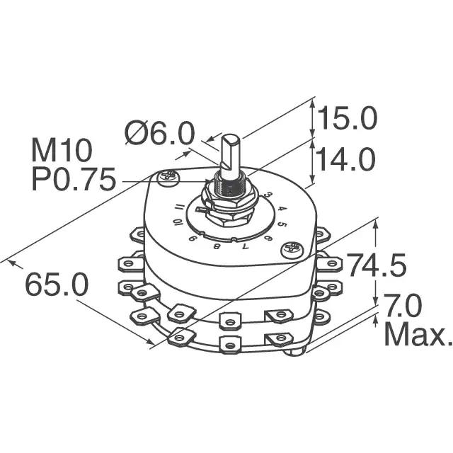 This is manufactured by NKK Switches. The manufacturer part number is HS16-3N. It is assigned with possible HTSUS value of 8536.50.9025. The product is rohs3 compliant. Moreover, it has solder lug terminal style. It also has a circular - 10.30mm dia dimensional features. The product carries possible position value of 2 ~ 11. The actuator is a 15.00mm long. The product's number of decks equals 3. The product exhibits 125 v of AC voltage rating. In addition, it is reach unaffected. Typical depth of 51.50mm behind panel. Features adjustable index stops. Whereas, there are 1 poles per deck. It is shipped in box. It has a throw angle 30°. Its typical moisture sensitivity level is 1 (unlimited). Additionally, the product's output is 12a (ac) Contact Timing Options: non-shorting (bbm). The product is available in panel mount configuration. The product hs, is a highly preferred choice for users. The product is designated with the ear99 code number The product carries flatted (6mm dia) actuator. Features sp11t circuit per deck. The product is made from sturdy phosphor bronze materials.
