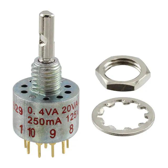 This is manufactured by C&K. The manufacturer part number is MA05L1NCGD. Its diameter is 5.16mm. The product contains 10 contacts. The given dimensions of the product include 5.16 x 16.51mm. The product is available in panel mount configuration. It has a throw angle 36°. Moreover, the product has a nominal 28 v dc, 125v ac voltage rating. In addition, the height is 16.51mm. Whereas, the minimum operating temperature of the product is -30°c. It has typical contact type of non-shorting. The product also provide mechanical stability with 10000cycles. The product is made from sturdy copper alloy materials. It has a maximum operating temperature of +85°c. The terminal is a solder type. It has typical 12 weeks of manufacturer standard lead time. The product has a current rating of 250ma (ac/dc). The product exhibits 125v of AC voltage rating. Moreover, it has pc pin terminal style. It also has a circular - 6.60mm dia dimensional features. The product carries possible position value of 5. The actuator is a 10.16mm long. The product's number of decks equals 1. Typical depth of 10.42mm behind panel. Features fixed index stops. Whereas, there are 1 poles per deck. It is available in the standard package of 1. The c&k's product offers user-desired applications. Furthermore, the product is galvanized with excellent gold contact finishing. Its typical moisture sensitivity level is 1 (unlimited). 28v of DC voltage rating. Contact Timing Options: non-shorting (bbm). The product is available in panel mount, through hole configuration. The product m, is a highly preferred choice for users. The product carries flatted (3.17mm dia) actuator. Features sp5t circuit per deck.