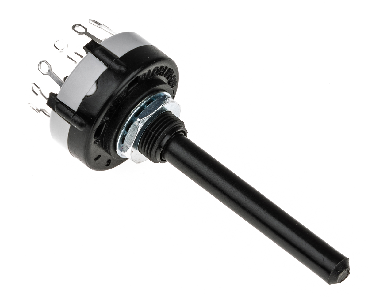 This is Rotary Switch 6 Way Solder Tab manufactured by Lorlin. The manufacturer part number is CK1030. The product is available in panel mount configuration. Moreover, the product has a nominal 250 v dc, 250v ac voltage rating. In addition, the height is 71.1mm. Furthermore, the product is 27.5mm wide. The product comes in 27.5mm depth. Whereas, the minimum operating temperature of the product is -30°c. The product contains 2 contacts. It has a maximum operating temperature of +85°c. The terminal is a solder tab type. The product is made from sturdy silver plated brass materials.