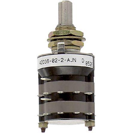 This is 2 → 5 positions 36° Rotary Switch 115 V ac/dc 6 → 28 V dc 1 A ac 100 mA dc Shaft manufactured by Grayhill. The manufacturer part number is 42D36-02-2-AJN.