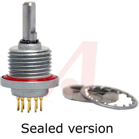 This is 2 positions 36° Rotary Switch 115 V ac 28 V dc 50 mA ac 200 mA dc Shaft manufactured by Grayhill. The manufacturer part number is 77SP36-01-1-02N.