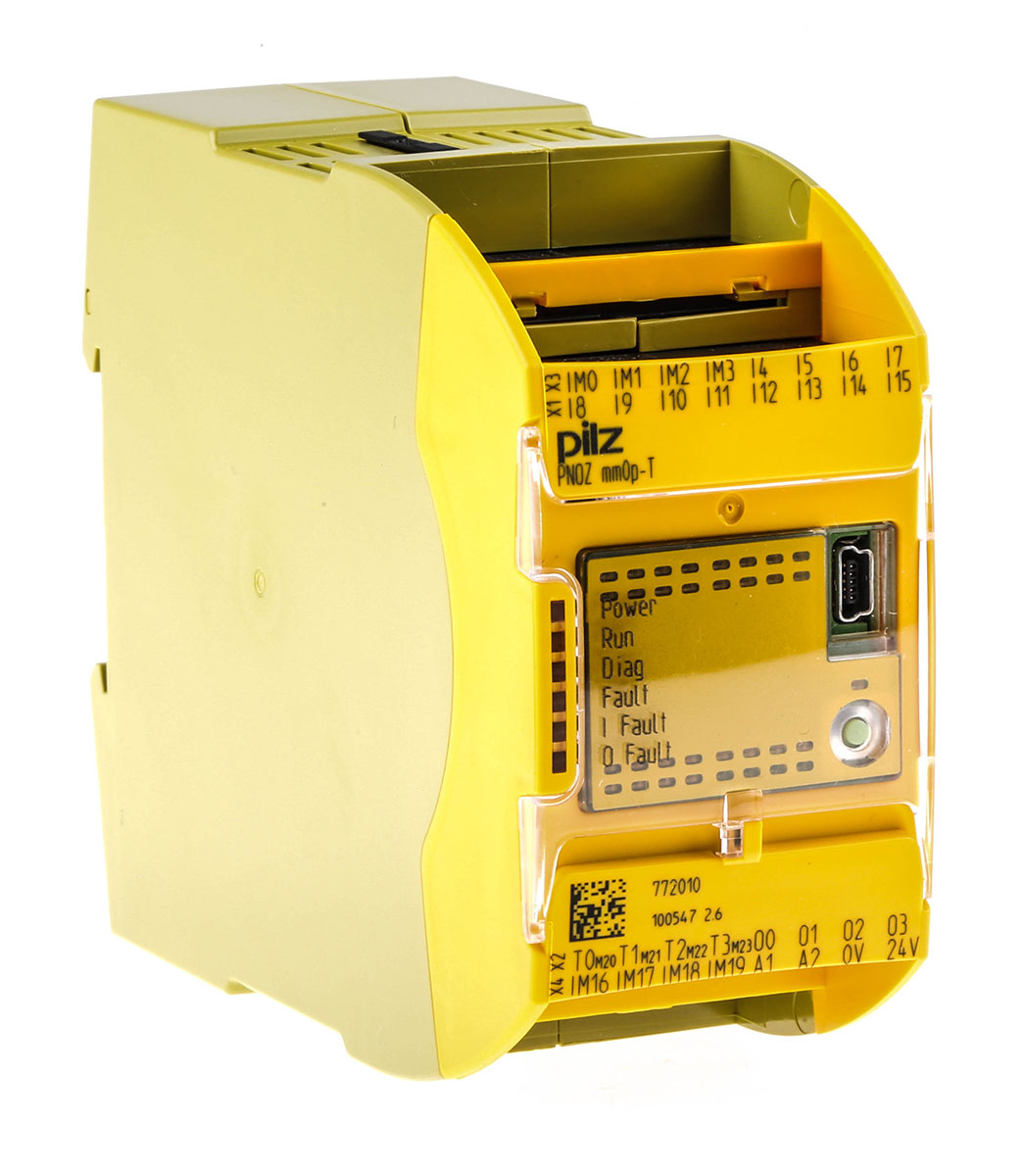 This is PNOZ mm0p-T manufactured by Pilz. The manufacturer part number is 772010. It features a remarkable led display. The given dimensions of the product include 98 x 45 x 120 mm. 24 is the I/O value of the product. Its accurate length is 98mm. Furthermore, the product is 45mm wide. The product comes in 120mm depth. The terminal is a cage clamp, screw type.