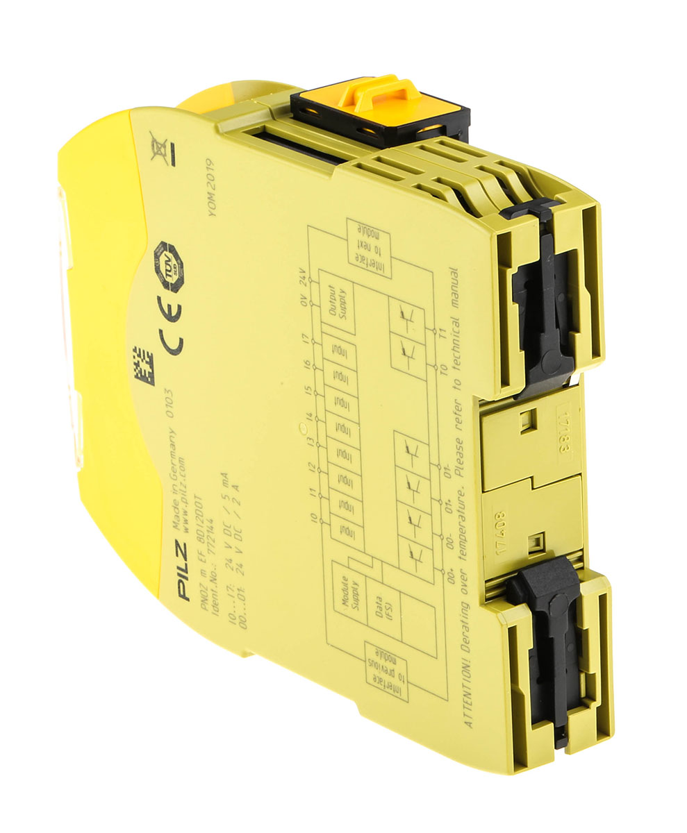 This is PNOZ m EF 8DI2OT manufactured by Pilz. The manufacturer part number is 772144. It features a remarkable led display. The given dimensions of the product include 98 x 22.5 x 120 mm. Its accurate length is 98mm. Furthermore, the product is 22.5mm wide. The product comes in 120mm depth. The terminal is a cage clamp, screw type.