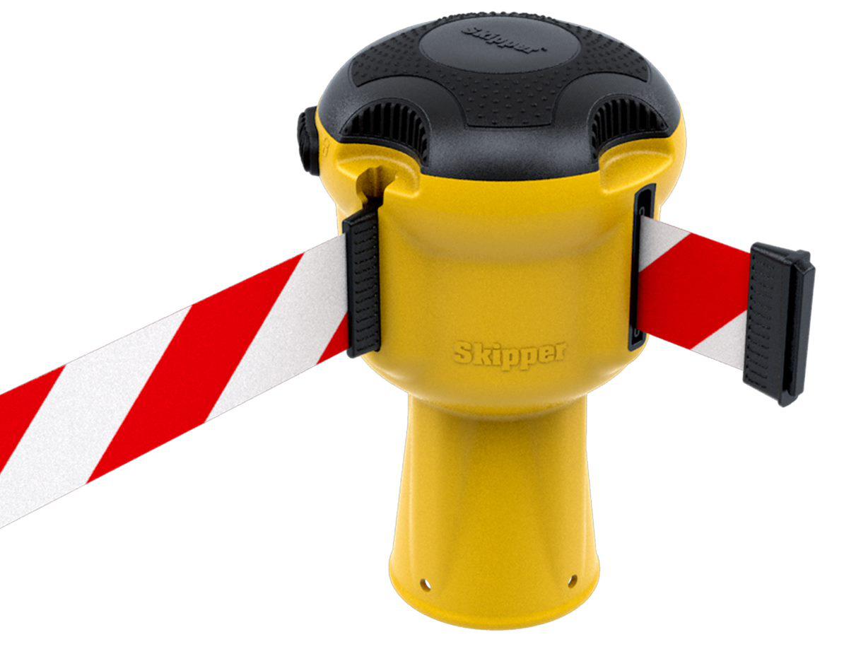This is 9m Barrier & Stanchion Tape Cassette for use with Traffic Cone Unique Post & Base System manufactured by Skipper. The manufacturer part number is Skipper01-YRW. It is a retractable barrier barrier.