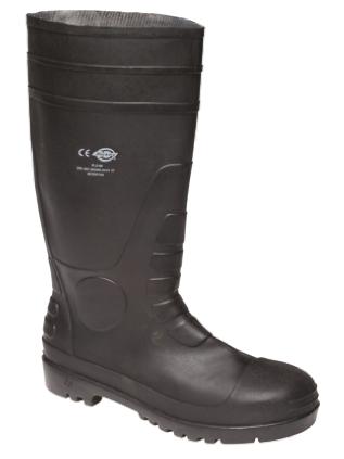 This is Men's Black PVC Boot UK 12 EUR 47 S5 manufactured by Dickies. The manufacturer part number is FW13105 Sz12. In addition, men is the available "Gender" of the product. It comes in safety wellington configuration.