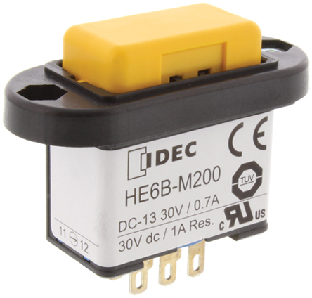 This is DPDT Off-On-Off Enabling Switch IP65 Panel Mount manufactured by Idec. The manufacturer part number is HE6B-M211.