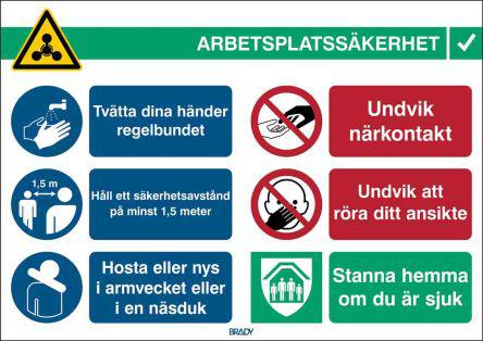 This is Safety Wall Chart Polypropylene Swedish 262 mm 371mm manufactured by Brady. The manufacturer part number is 306952. The product is made from highly stable and reliable polypropylene b-7527. In addition, the height is 262 mm. Furthermore, the product is 371mm wide. It comes in wall chart configuration.
